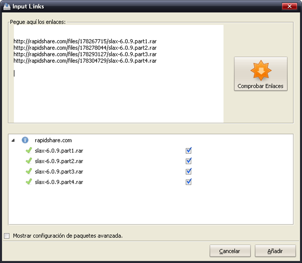 En principio es compatible con Rapidshare, Megaupload y Gigasize, aunque permite añadir otras direcciones y gestionar cuentas de pago.